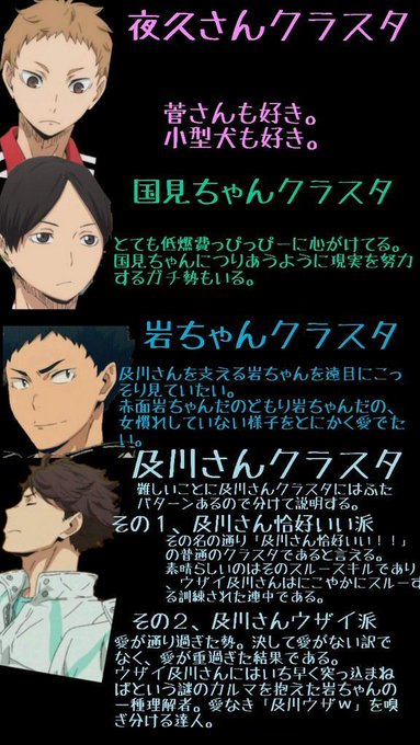 今回はハイキューの4期、to the topから登場する稲荷崎高校の新キャラクター、 宮兄弟のかっこいいところ についてご紹介します! 宮侑と宮治の二人は稲荷崎高校のエースで、 「高校バレー最強ツインズ"宮兄弟"」 と呼ばれて絶妙なコンビネーションで他校を圧倒。TikTokで及川さん名言関連のショートムービーを探索しよう このクリエイターの人気コンテンツを見てみよう:推しの細胞になりたい(@kuro_nn11), 菅 の ほ く ろ(@sugaww0613), すがわらの笑顔守りたい(@hqsuga_), 𝐨𝐧(@__nn328), 遊馬晃祐🇯🇵(@asumakosuke10) ハッシュタグで最新動画を探索しよ 今回はそんな「ハイキュー!!」 (古舘春一/集英社) の個性豊かなキャラクターたちによる名言をご紹介しちゃいます! 「ハイキュー!!」とは 烏野高校排球部のメンバーが繰り広げる青春スポーツ漫画で14年からアニメ化もされています。